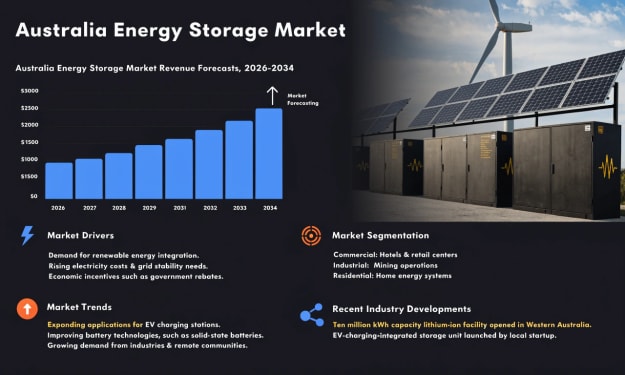 According to IMARC Group, the Australia energy storage market reached a capacity of 4.72 GW in 2025 and is projected to reach 19.81 GW by 2034, growing at a compound annual growth rate (CAGR) of 17.28% during 2026–2034. The market is expanding rapidly as Australia accelerates its transition toward renewable energy and modern electricity infrastructure. Energy storage systems play a critical role in balancing power supply and demand by storing excess electricity generated from renewable sources such as solar and wind. These systems release stored energy during periods of high demand or low renewable generation, helping maintain grid stability. Increasing investments in utility-scale battery projects, advancements in battery technologies and growing government support for clean energy initiatives are driving the development of large-scale energy storage infrastructure. As renewable energy penetration increases across Australia, energy storage solutions are becoming essential components of a resilient and flexible electricity grid.